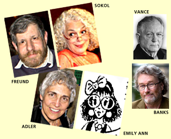 Jim Freund guest hosts this episode in which Margot Adler reads a sermon on witchcraft excerpted from her newly released Amazon single, Why We Love Vampires; and honors the 50th Anniversary of the New York Review of Books with a classic episode of David Dozer's Poisoned Arts in which Emily Ann Andrews gets a job at "The New York To-Do Of Books," and features Marilyn Sokol (currently appearing in Old Jews Telling Jokes) in the dual role of American intellectual Hannah Hardwick and South American revolutionary scholar Margarita Conseula Garcia y Vega. Tributes also to the late Iain Banks and Jack Vance.
