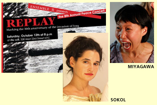 MONDAY, SEPTEMBER 30, Actress Susie Sokol on the Elevator Repair Service's "Arguendo," a dramatic interpretation of the text of a First Amendment case brought by three strippers to the Justices of the 1990 Supreme Court; playwright Chiori Miyagawa and performer McKenna Kerrigan on "I Came to Look for You on Tuesday," a play and series of inter-active community events based upon reunions following losses incurred by disasters or war; and Director / Founder Idith Meshulam and David Riker (co-author with Jeremy Scahill of "Dirty Wars) on Ensemble Pi's 8th Annual Peace Project Concert, commemorating the 10th Anniversary of the beginning of the Iraq War.